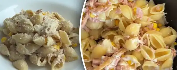 Rýchle riešenie pre chutnú večeru: uvaríte cestoviny, do misy pridáte smotanový syr, konzervovaný tuniak vo vlastnej šťave a kukuricu, premiešate a posypete parmezánom.