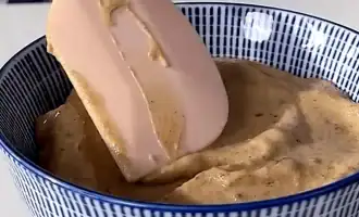Zmiešajte múku, cukor, vanilkový cukor, sódu bikarbónu, prášok do pečiva a soľ v inej miske. Mokrú zmes vlejeme do suchej, vareškou miešame, kým cesto nie je hladké. Cesto bude tekutejšie ako pri klasických receptoch.
