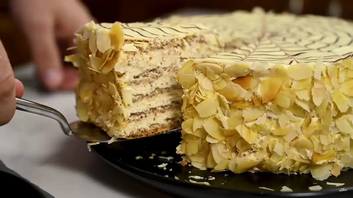 Odležanie v chladničke cez noc je nevyhnutné. Vláhkosť z krému sa stihne rovnomerné prenikať do vrstiev, koláč sa „zjednotí“ a jeho chuť sa prehĺbi. Pred servírovaním ho vyberte na 20-30 minút, aby krém správne zmäkol.