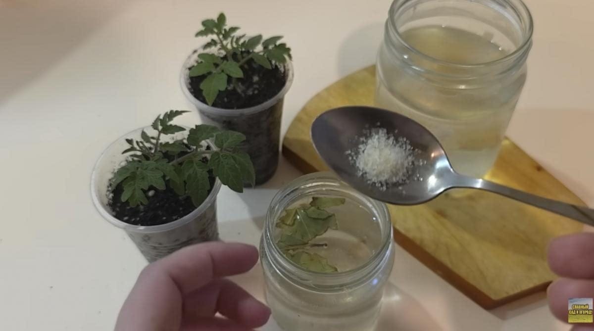 Ak problémom je výrazné žltnutie listov, prichádza na rad druhý, jednoduchší recept. Rozdrvte jeden strúčik cesnaku, zalejte ho litrom horúcej vody a nechajte niekoľko hodín (ideálne cez noc) luhovať. Následne roztok prefiltrujte a aplikujte jednu polievkovú lyžicu pod každú sadenicu.